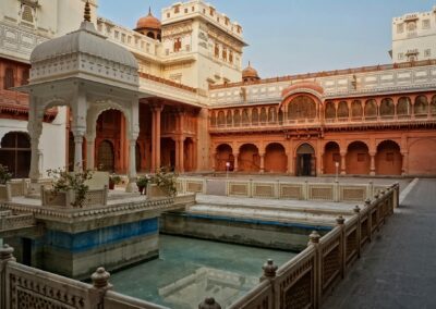 We gaan vroeg in de ochtend naar de Doodh Mandi markt, de melkmarkt. De melkverkopers, gekleed in traditionele kledij, brengen de melk in grote melkkannen met lokale bussen of een jeep naar de markt om te verkopen. Later op de dag bezoeken we Amber Fort uit de 16e eeuw, het biedt een wijds uitzicht over valleien en vlaktes. We maken ’s avonds nog een ritje met een fietsriksja door de smalle straatjes van de oude stadswijken van Jaipur.