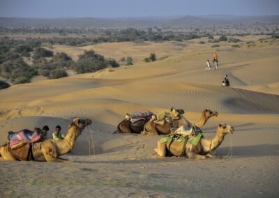Bikaner wordt ook wel het land van de kamelen genoemd; de stad staat bekend om de best te berijden kamelen ter wereld en heeft dan ook één van de grootste kamelenonderzoeken en fokkerijen ter wereld. We bezoeken Camel Research Farm en proeven de dikke kamelenmelk. Dan leren we alles over de lokale paarden in een onderzoekscentrum waar ook paarden zoals Kathiari en Zanskari gefokt worden. We sluiten de dag af met een bezoek een zuivelfabriek en een zuivelcoöperatie. Het werkt op basis van een drieledig systeem, waarbij boerenleden eigenaar zijn van zuivelcoöperaties die op hun beurt weer eigenaar zijn van districtsmelkproducenten verenigingen.